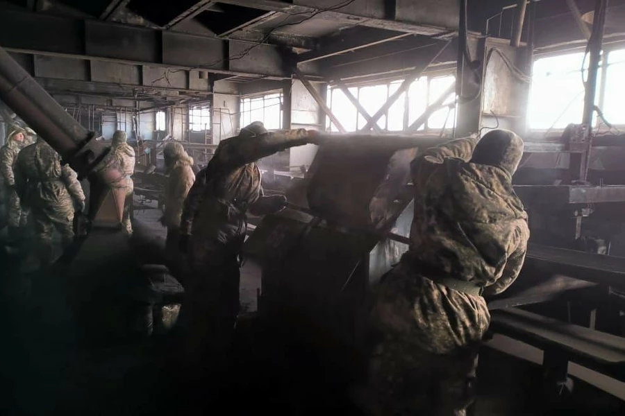 Солдаты и спасатели подают уголь вручную после пожара на ТЭЦ в Семее - фото